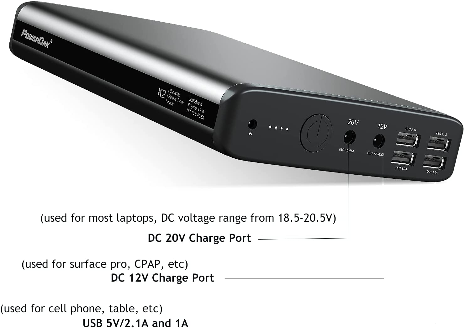 Laptop Battery Pack 50000mAh Power Bank for Laptop, PowerOak Portable Laptop Charger 20V/12V/5V External Battery Backup Compatible with Notebook Laptop Tablet Phone