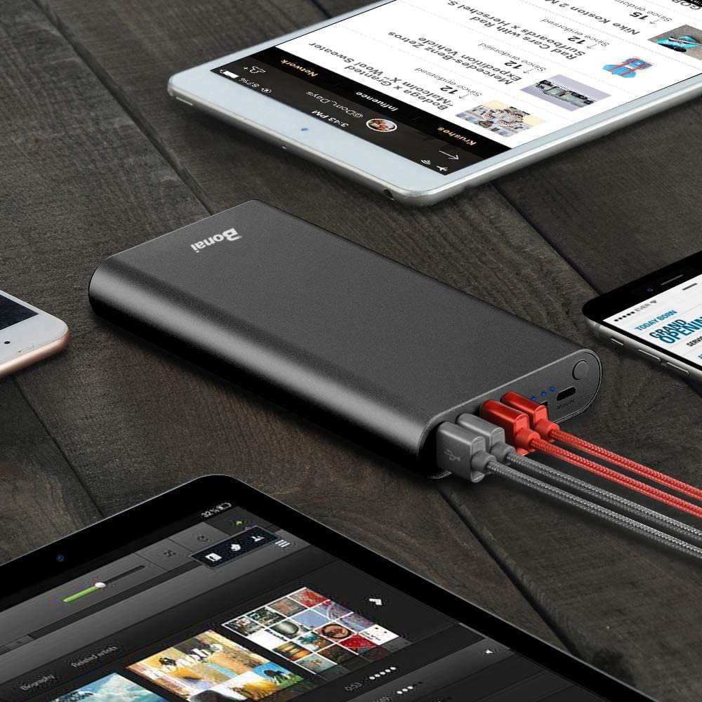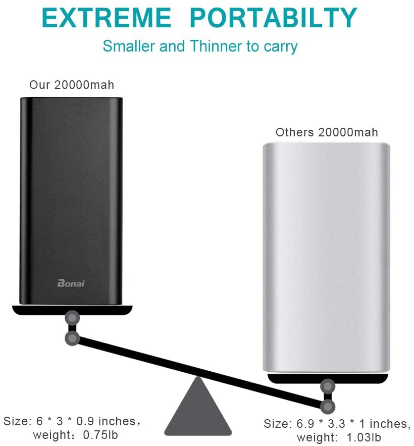 - Polymer Battery: Larger capacity and smaller size. Exquisite and portable, handheld size but High capacity. 20000mAh Portable Charger for Phones: Charge your iPhone 7 about 8 times, iPhone 7 plus over 5 times, iPhone 6s up to 9 times, a Galaxy S7 up to 5 times, or an iPad Mini more than 3 times with a massive 20000mAh capacity. Please be fully charged for the first time