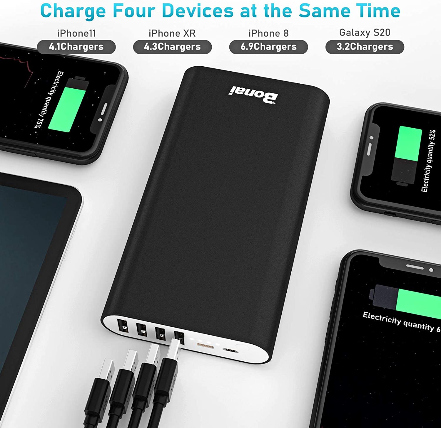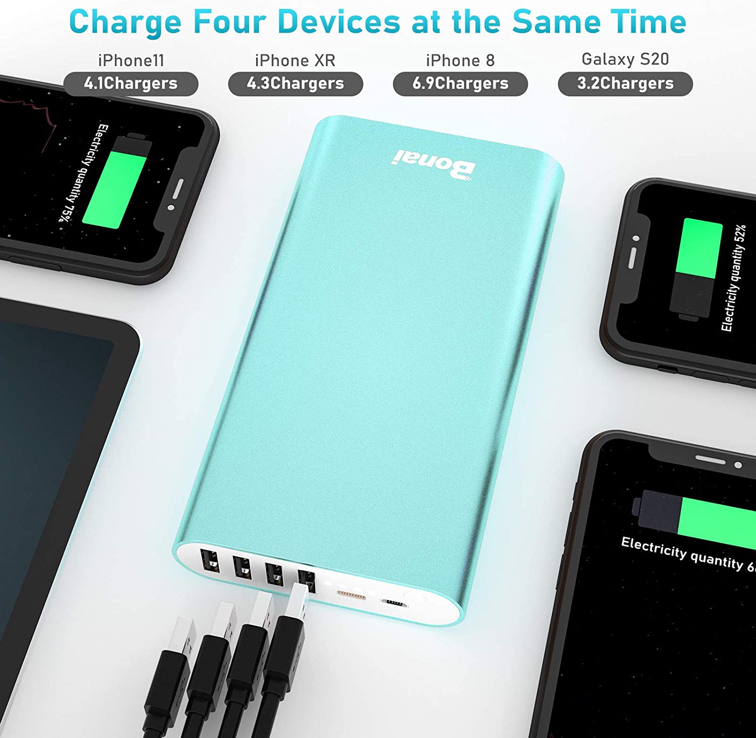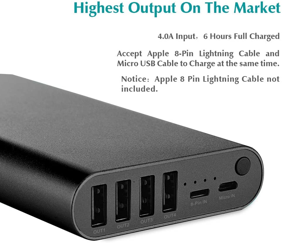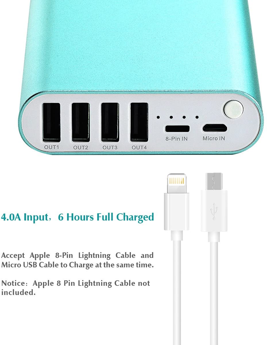 - Special Color: Compact and slim, aluminum alloy shell with excellent touch. Built-in Li-polymer ensures definitely safe, metal body prevents from dust, knocking, dropping and more. The most popular colors are suitable for your own using or as a gift for your families and friends. Four USB outputs are very compatible with families and friends as the same time