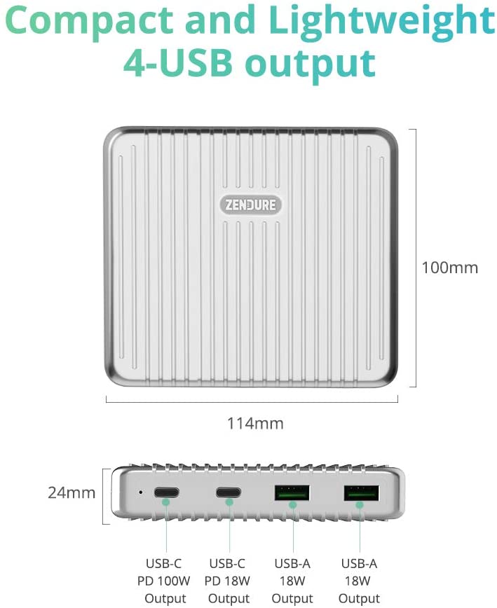 To charge your SuperTank at maximum speed, you need a compatible 100W USB-C charger and a USB-C cable that supports 5A current throughput. That’s why we are also introducing Zendure SuperPort 4.