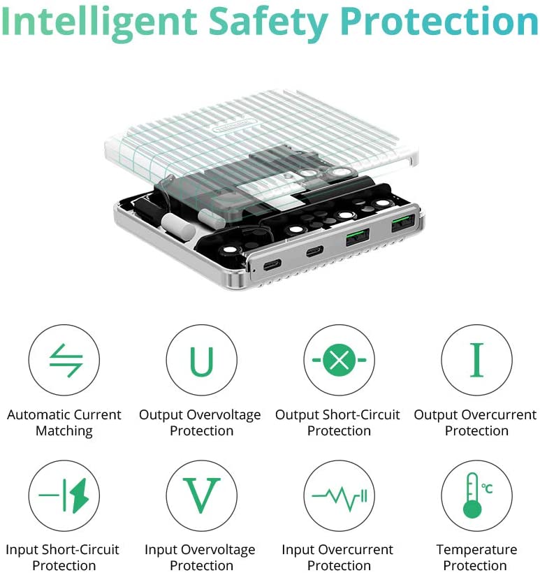 SuperPort has eight layers of safety protection: automatic current matching, output overvoltage protection, output short-circuit protection, output overcurrent protection, input overvoltage protection, input short-circuit protection, input overcurrent protection and temperature protection.