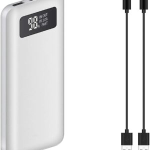 Portable Slim Power Bank Works for Your Samsung Galaxy Halo with 10,000mAH Digital Display Screen, Status Update, and 3 Cables Included! (White)